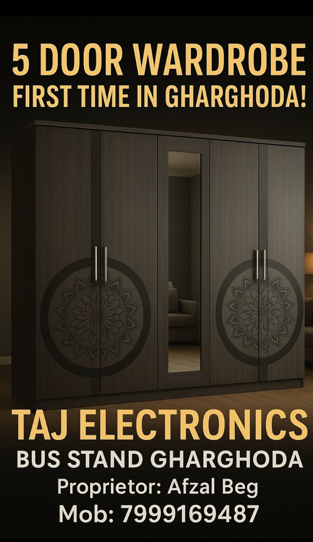 घरघोड़ा में पहली बार ताज इलेक्ट्रॉनिक, बस स्टैंड घरघोड़ा में लेकर आया है 5 डोर वाली आकर्षक और स्टाइलिश लुक की अलमारी, जो आधुनिक डिज़ाइन और मजबूती का बेहतरीन मेल…