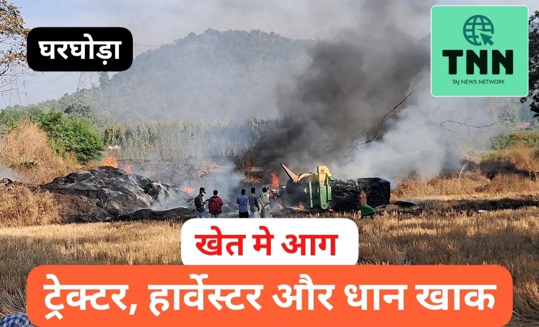 घरघोड़ा में ट्रैक्टर-हार्वेस्टर जलकर राख | ताज न्यूज़ 🔴 ब्रेकिंग : घरघोड़ा रायकेरा में धान कटाई के दौरान ट्रैक्टर से लगी भीषण आग — ट्रैक्टर, हार्वेस्टर और सारा धान जलकर…