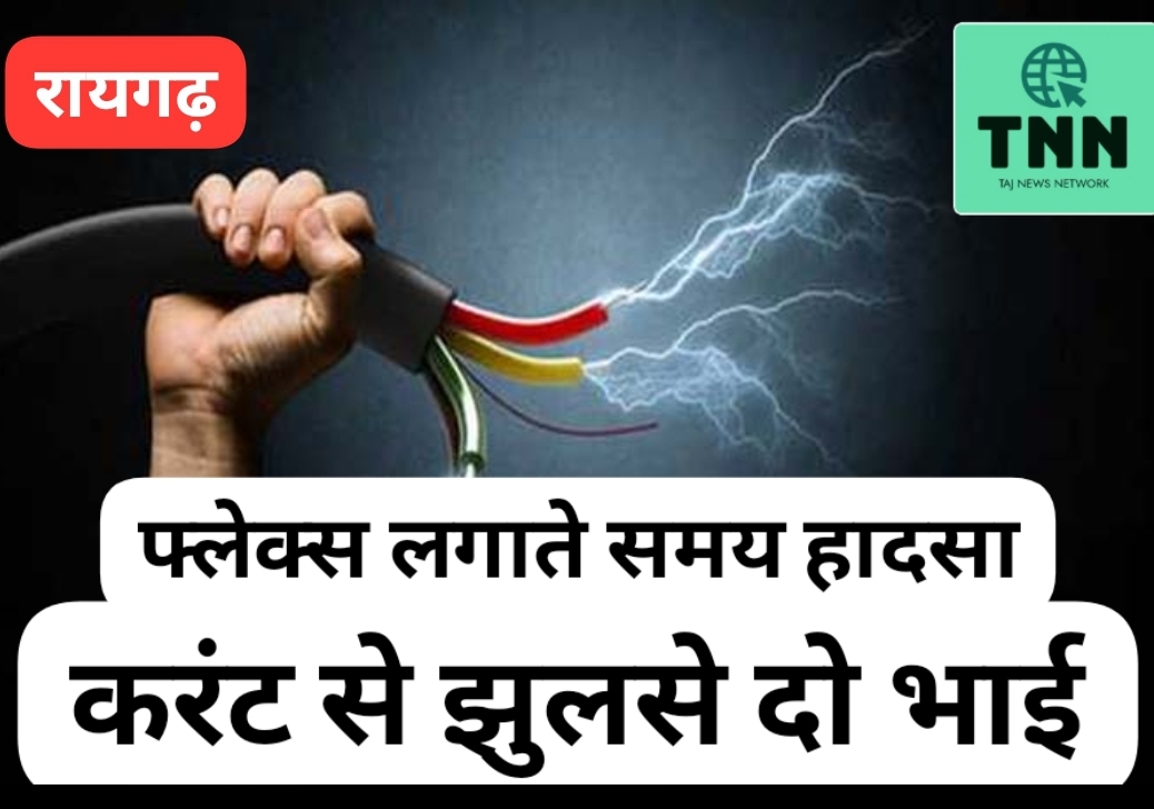 ⚡ फ्लेक्स लगाते समय बड़ा हादसा⚡ हाईटेंशन लाइन की चपेट में आए दो चचेरे भाई⚡ गंभीर रूप से झुलसे, रायपुर रेफर