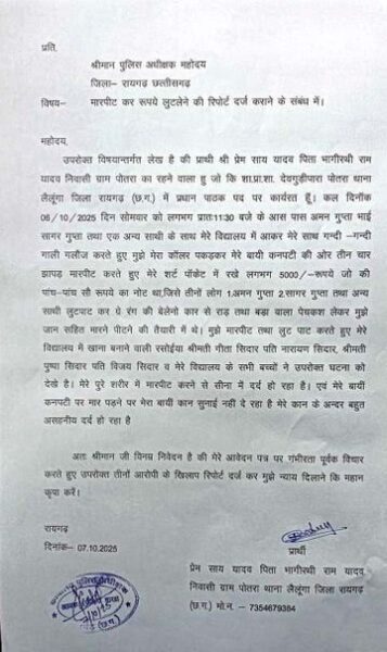 पीड़ित हेडमास्टर ने बताया कि जब लैलूंगा थाने में एफआईआर दर्ज नहीं हुई, तब उन्होंने रायगढ़ पुलिस अधीक्षक कार्यालय जाकर लिखित आवेदन सौंपा। इस पर एसपी ने मामले को गंभीरता से लेते हुए तुरंत जांच के निर्देश दिए। इसके बाद लैलूंगा पुलिस ने देर शाम आरोपियों के खिलाफ BNS की धारा 115(2)-BNS, 296-BNS, 3(5)-BNS और 351(2) के तहत अपराध दर्ज किया। फिलहाल पुलिस ने मामले की जांच शुरू कर दी है और आरोपियों की भूमिका को खंगाला जा रहा है। इस कार्रवाई के बाद गांव और स्कूल परिसर में चर्चा तेज हो गई है।